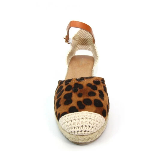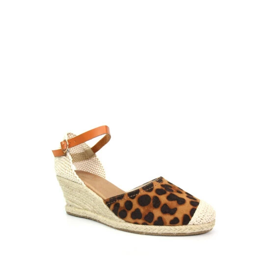 A classic espadrille closed toe wedge in funky ocelot-print. Dress up any outfit with this beautiful and comfortable wedge.