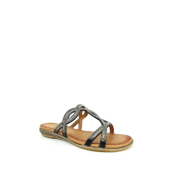 Gabriella is an easy slip-on mule. With a gemstone, encrusted upper meaning lots of sparkles, we adore this sandal. The simple slip-on design makes this ideal for a holiday sandal.