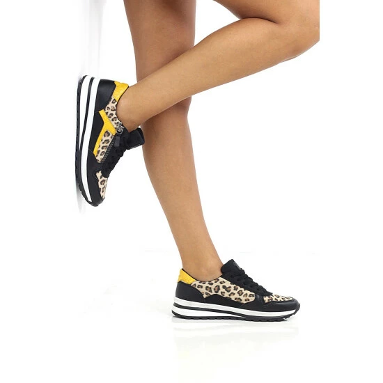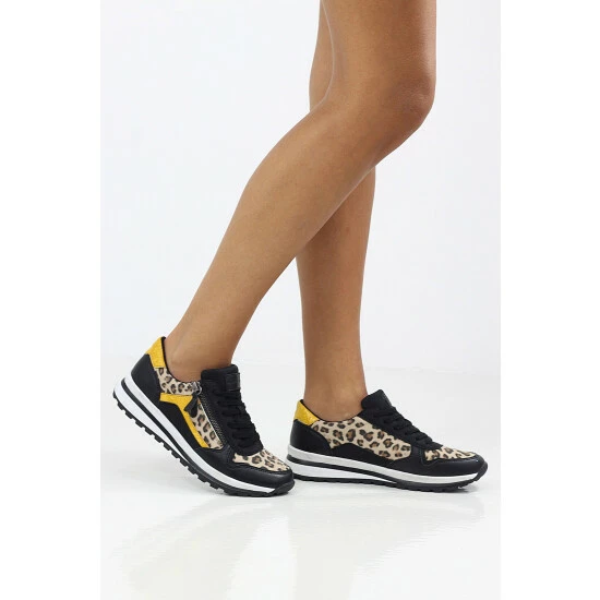 Their Porsha trainer is fabulous. The slight wedge (3cm) is bang on trend and the contrasting colours and textures really make these trainers sing. Featuring leopard print and mustard inserts as well as a decorative zip, you’ll want to style every outfit around these trainers.