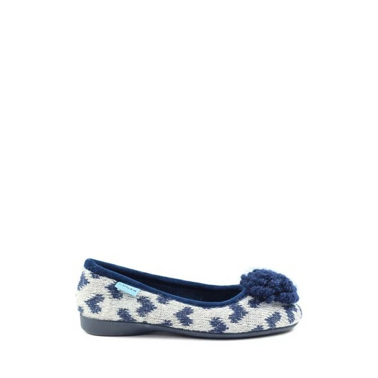 This soft little number will keep your feet toasty warm. The delicate fine knit heart detailing paired with the bold pom pom adds a touch pizzazz.
