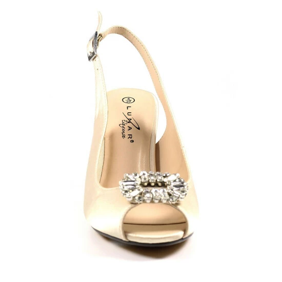 The Venice, a stunning, satin slingback. The 3-inch heel is the perfect size to ensure you will be dancing all night long and the gemstone embellished front ensures you look great.