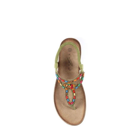 The Una Sandal is perfect for those long summer days. The brightly coloured beads and diamanté detail really make this sandal stand out.