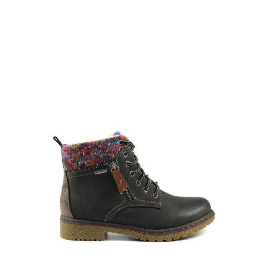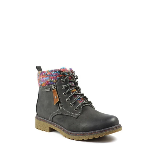 The Jalapeno, ankle boot with a knitted cuff ensures your feet stay warm and cosy. Fitted with a full-length zip fastener, laces, and a padded insole, these are sure to give you maximum style and comfort.