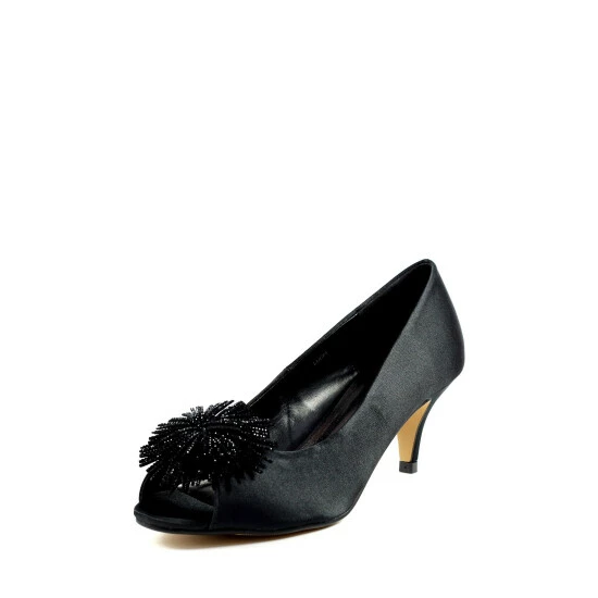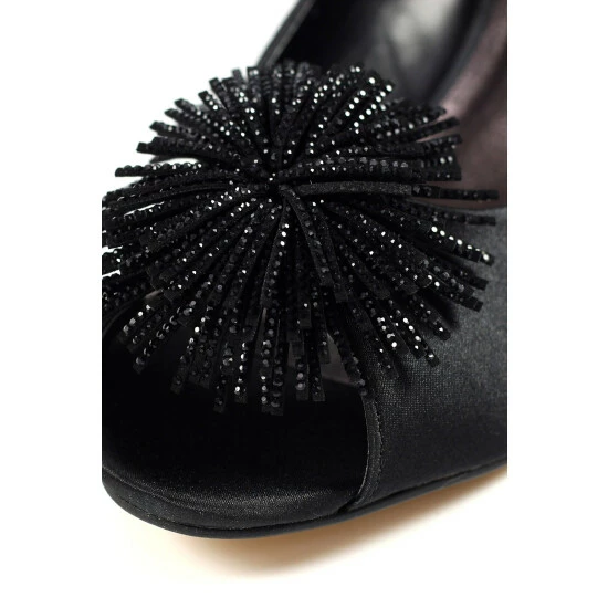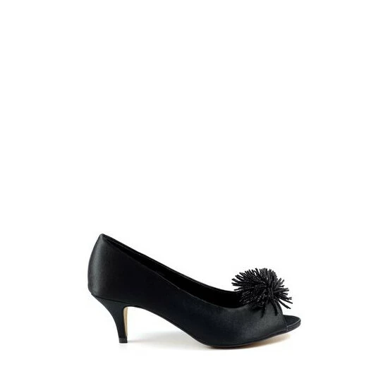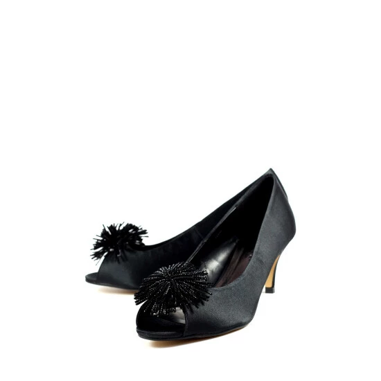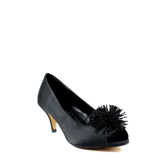 The Lucia, a simple and elegant satin kitten heel with a beaded tassel corsage. The Lucia is a classy, low heel, perfect for those who want to combine both style and comfort.