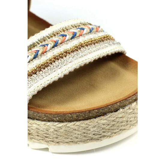 The Orson, a gorgeous flatform sandal. It features an adjustable, self fastening strap, a fabulous cushioned insole and a decorative lower strap featuring pearls, sequins and beads.